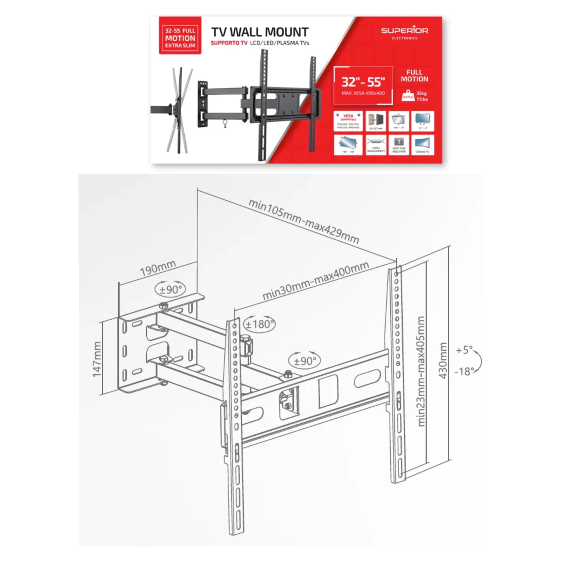 Superior držiak na TV 32-55″ Full Motion Extra Slim