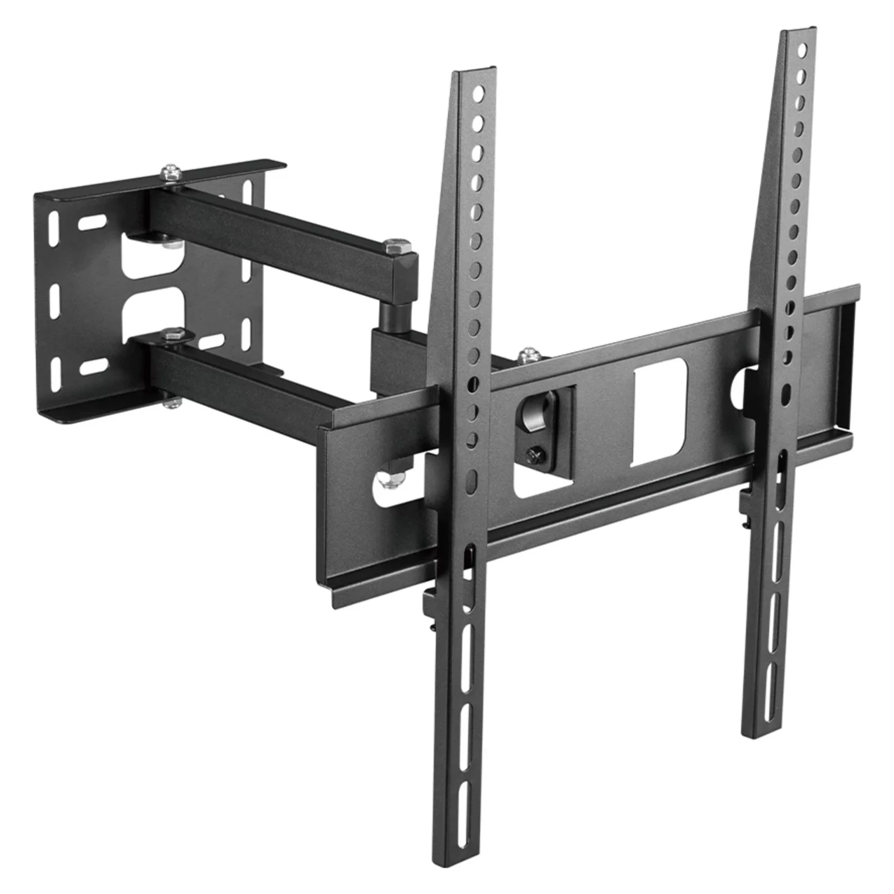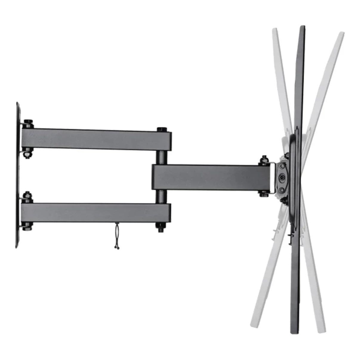 Extra tenký držiak na stenu pre TV s uhlopriečkou 32″ – 55″ (81cm – 139 cm).. Možnosť uchytenia TV pomocou štandardu VESA 200×200, 300×300, 400×200, 400×400. Držiak je plne pohyblivý do strán až o 90° s možnosťou náklonu od +10° do – 15°. Vyhotovenie je kovové v čiernej farbe.