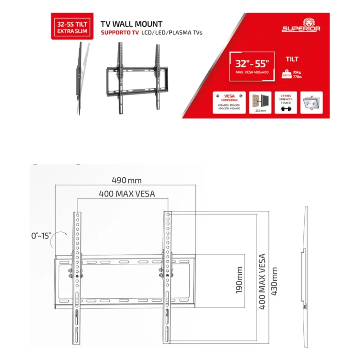 Superior držiak na TV 32-55″ Tilt Extra Slim