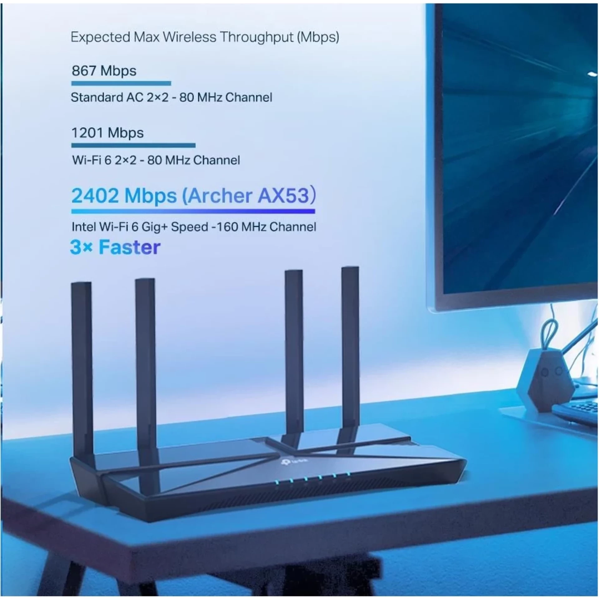 Dvojpásmový gigabitový router Archer X53 zabezpečí bezproblémové fungovanie internetu vo vašej domácnosti. Vďaka podpore WiFi 2,4GHz a 5GHz zabezpečí pripojenie pre novšie aj staršie zariadenia. Router je vybavený gigabitovými portami tak nebudete pociťovať takmer žiadne rýchlostné obmedzenia.