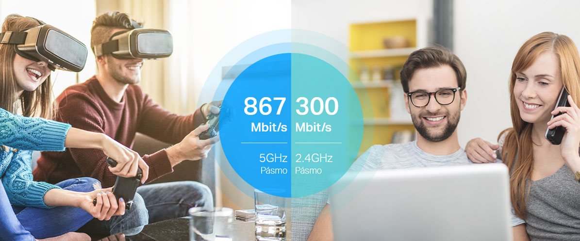 Súbežný prenos dát rýchlosťou 300 Mb/s v pásme 2,4 GHz a 867 Mb/s v pásme 5 GHz