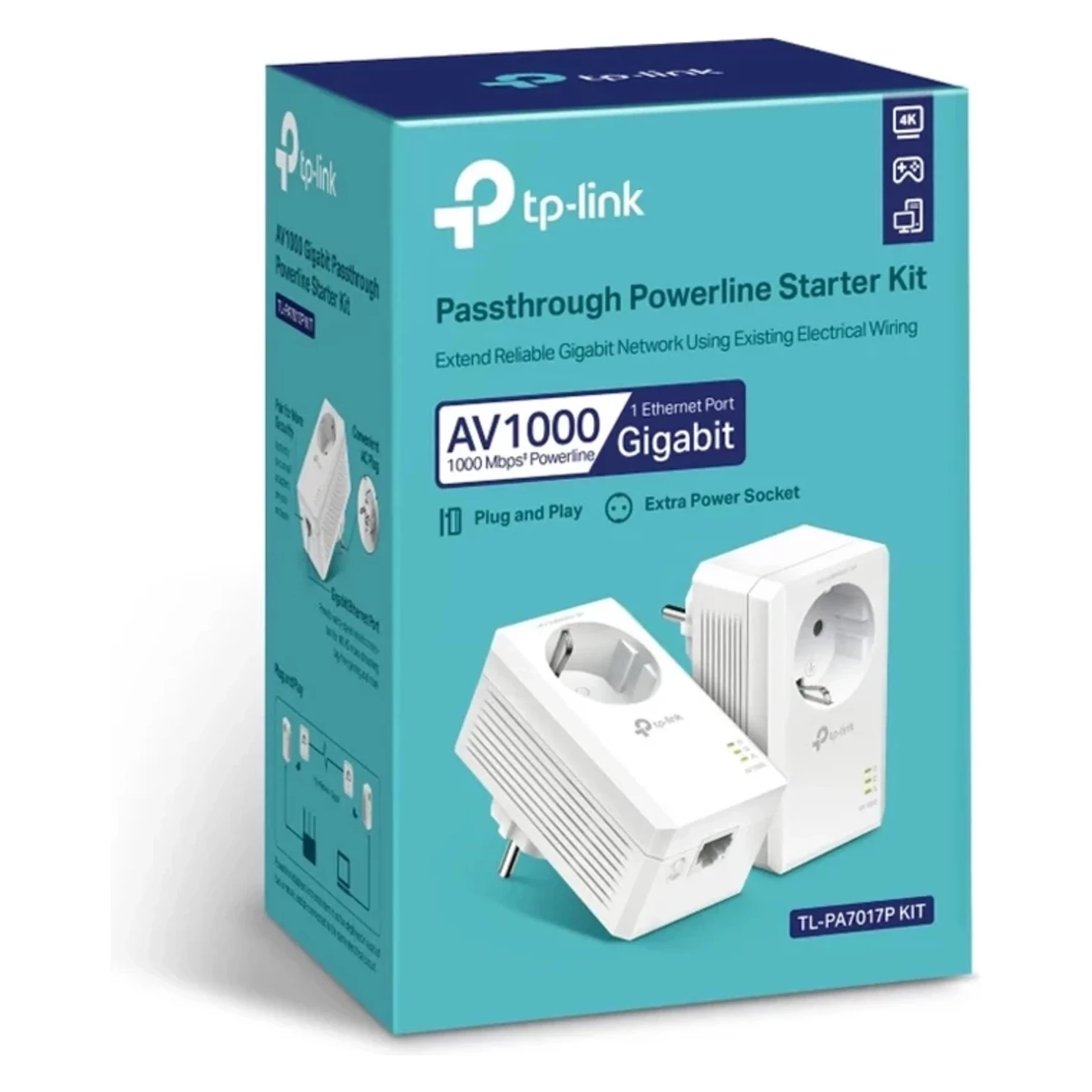 Zariadenie TL-PA7027P zabezpečuje prenos internetu po elektrickej rozvodnej sieti v rámci domácnosti. Maximálny prenos dokáže dosiahnuť rýchlosť az 1Gbps. Vďaka dvom ethernetovým portom je možné k zariadeniu pripojiť až dve zariadenia. Na zariadení sa nachádza aj priechodzia elektrická zásuvka.