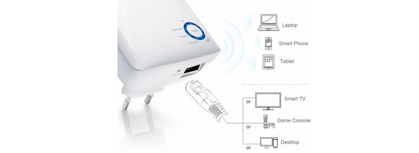 TP-LINK RE850 je ý extender/repeater. Vďaka nemu vytvoríte väčšiu a silnejšiu sieť vo vašej domácnosti.s. Vďaka ethernetovému portu vie poslúžiť aj ako bezdrôtový adaptérk, ku ktorému je možné pripojiť káblové zariadenie.