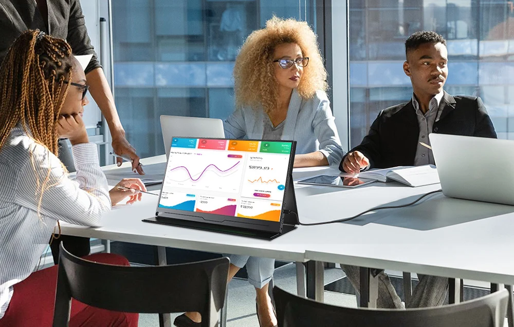 Monitor je kompatibilný so zariadeniami USB-C, čo umožňuje rozšíriť obrazovku telefónu pre prácu alebo hranie hier. Monitor tiež funguje s hernými konzolami, ako sú PS4, Xbox One a Switch, takže je dokonalým spoločníkom na cesty. Vďaka funkcii duplikácie obrazovky B5 vám umožňuje pohodlne prezentovať obsah počas schôdzok. Port OTG (micro USB) zase umožňuje pripojenie myši alebo klávesnice.