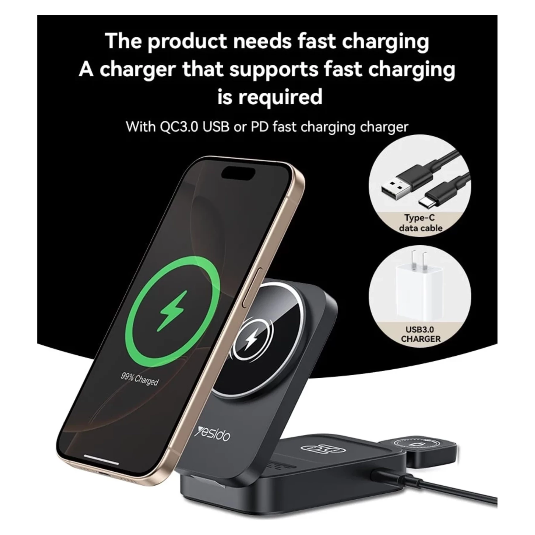 Skladacia bezdrôtová nabíjacia stanica DS27 3 v 1 od značky YESIDO je ideálnym riešením pre ľudí, ktorí si cenia funkčnosť, pohodlie a estetiku v jednom zariadení.